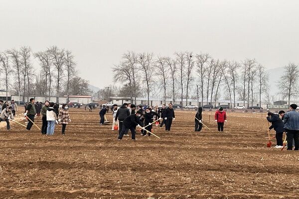 “先把自家的地垄耙起来,然后把地搂平!”在种植基地,不时传来李怀生指导大家的声音,各单位积极响应,热火朝天地抡起耙子等农具,在各自地块开始了种植前的准备工作。当李怀生请来种植基地的技术人员时,大家纷纷上前认真听讲。技术人员向大家详细讲解了针对不同种子如何掌握挖坑深度、种植方式、覆膜等需要注意的事项后,大家个个干劲十足,全身心地投入到播种当中。种植完成后,大家打开浇灌的水龙头,咕咕的水流进了耙好的一块块地畦里,这一刻,大家共同的期待一定是在这片土地上,能够看到这些绿色蔬菜的成长与丰收。